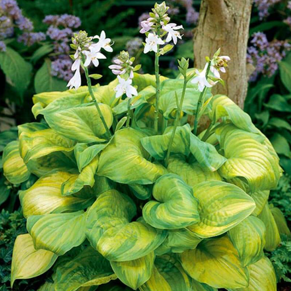 Hosta 'Guacamole' is a striking, fast-growing cultivar known for its vibrant apple-green leaves with dark green margins and fragrant pale lavender blooms. Its large, heart-shaped foliage adds bold texture and colour to shaded borders or containers. Named after the avocado-based dip, 'Guacamole' thrives in partial to full shade and forms a dense mound over time.